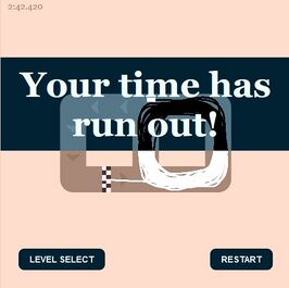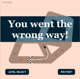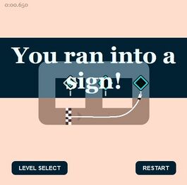 Crossing the finish line with all conditions and rules satisfied will register the time with a "Finish!" text and record the faster of the times. If the finish line was hit without triggering any errors, but the rules of the symbols are unsatisfied, the incorrect symbol flashes red, the timer doesn't register, and the puzzle remains unsolved. In any case, the option to reset or return to the level select gets shown.