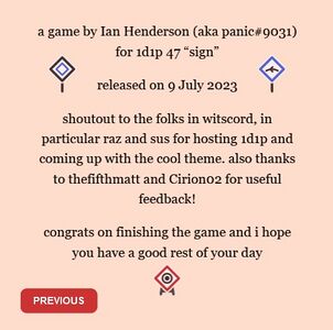 You drove off the road! is a witlike "racing" game by panic for 1d1p 47 where a car has to follow driving rules imposed by the game.