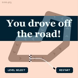 After selecting a level from the over world, the game allows 1 chance to go back to the hub immediately. If the car moves, that chance disappears and the timer appears. Hold the mouse buttons to make the car move toward the cursor. The timer only starts when the car hits the finish line at first.